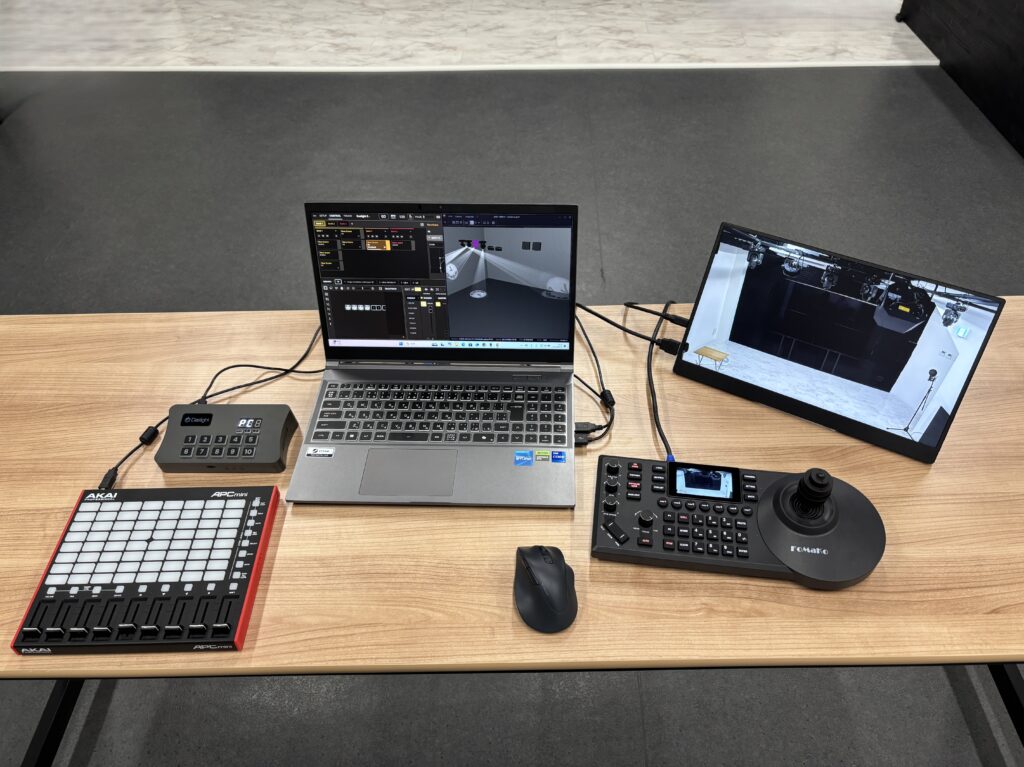 - またご自身でパソコンを持ち込み操作することもできます。当施設では照明操作に「daslight5」・映像配信に「OBS Studio」を使用しています。