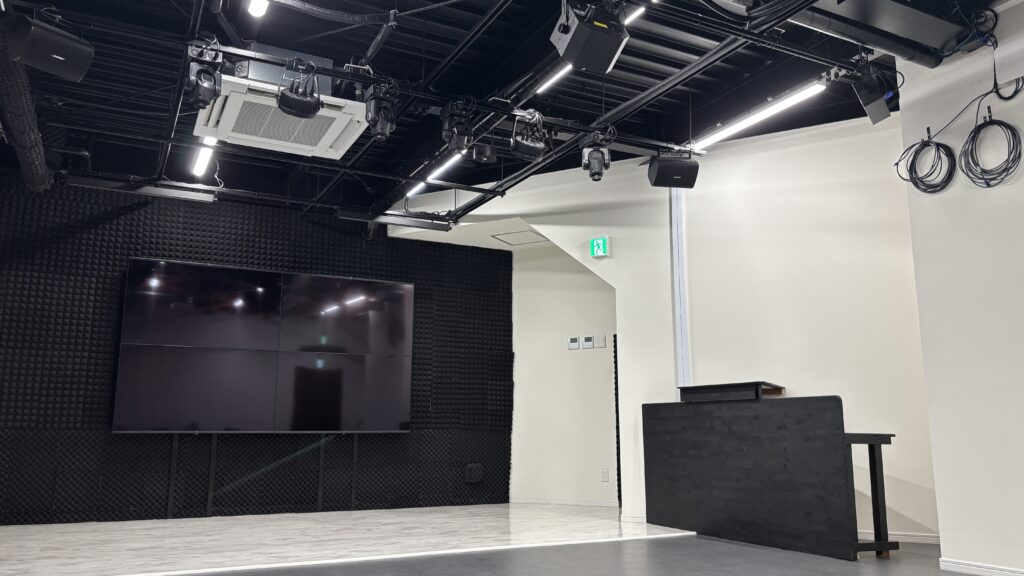 JR東海駅東口から徒歩2分の便利なロケーションで音響・照明などの設備を利用した撮影・配信・各種イベントが行えるスタジオです。